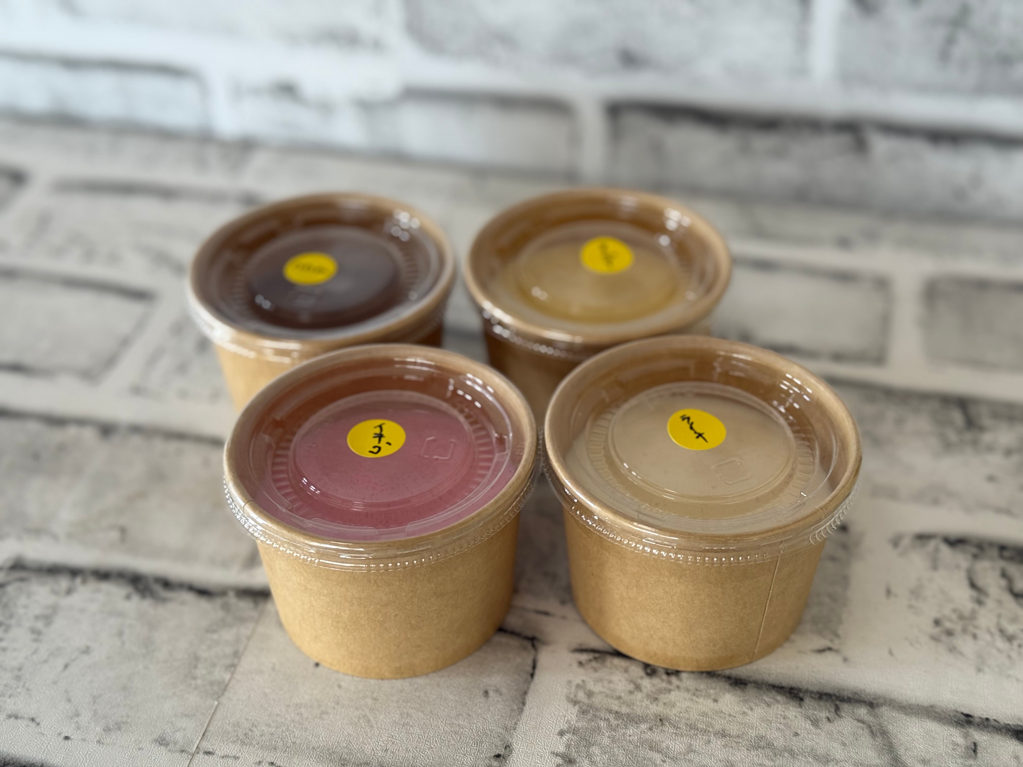 豆腐プリンは、豆乳とフレーバーでお好きな味を選んでもらってます。